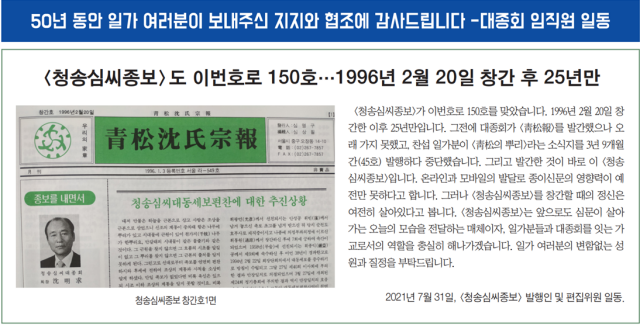 대종회 창립 50년을 자축하며 과거가 아니라 미래를 내다봅니다.