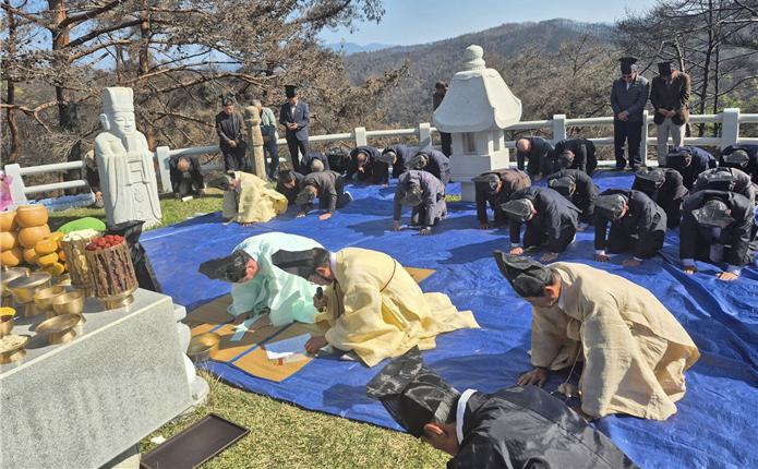 지난달 29일 관향 청송 보광산 소재 시조 문림랑공(휘 洪孚) 묘소 추향제 봉행은 경향각지에서 많은 일가분이 참례하였다.