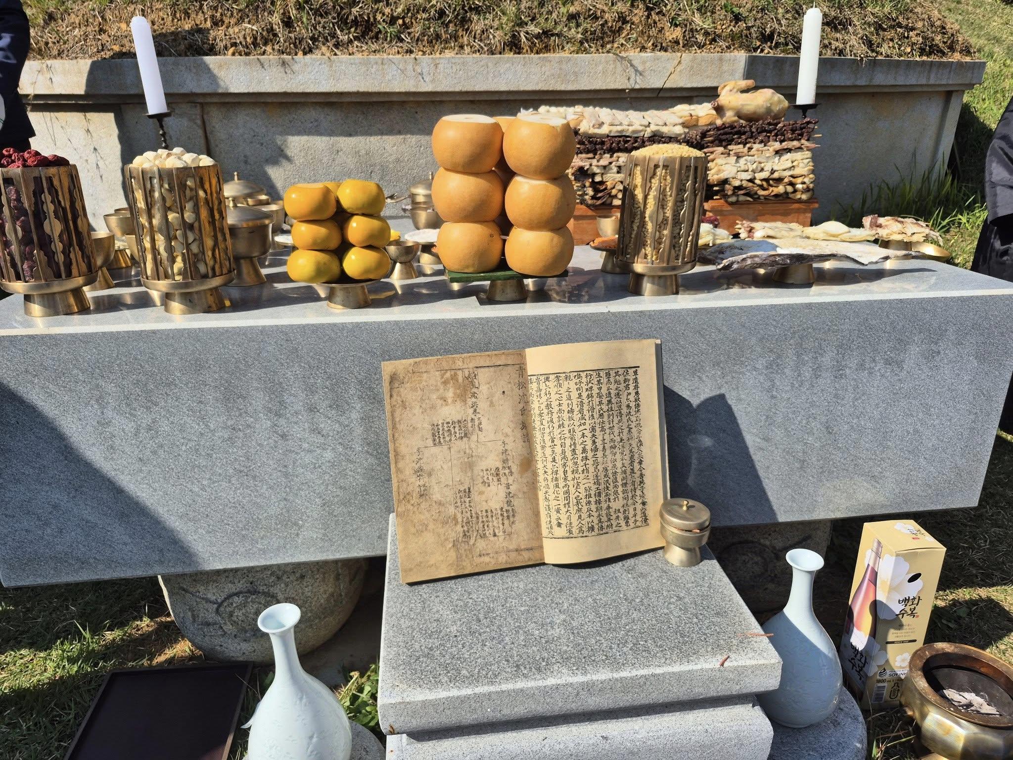 維 歲次 乙巳 九月 癸亥 朔, 初 九日 辛未 二十五世孫 載文 敢 昭告于. 靑松沈氏 始祖님이시여. 始祖님께서 得姓하신 後 지난 800餘年 동안, 우리 後孫들은 始祖님의 隆氣를 받아 高麗末에서 朝鮮朝 내내 國內 華閥로써 世人들로부터 三韓甲族이라는 稱頌과 우러름을 받으며 살아왔습니다. 나라에는 國史가 있고 氏族에는 族譜가 있어, 歷史를 定立하고 繼代를 明確히 하여 祖孫과 叔姪 등을 살펴 系統을 確實히 하고, 秩序를 維持하며 崇祖敦睦을 根本으로 삼기에 一家는 百代 至親이라 하였습니다. 世上에는 數 많은 氏族이 共存하고 있지만, 우리 靑松沈氏는 그 어떤 姓氏보다 앞선 名門巨族이었습니다. 朝鮮朝 1476年에 刊行된「安東權氏世譜」에 이어, 朝鮮 仁宗 元年 1545 乙巳年에, 沈通源 左議政 先祖께서「靑松沈氏族譜」를 刊行하니 通算 두 번째요, 族譜라는 이름은 그 最初의 일이니 實로 자랑스러운 일이 아닐 수 없습니다. 左議政 先祖께서는 그 序文에서 “아! 이 族譜를 같이한 사람은, 모두 하나의 根本이 萬 가지로 갈라지고, 千 가지의 끝이 한 줄기이니, 根本을 알아서 親族을 사랑하는 마음을 가지면, 누가 敢히 먼 一家라고 하여 길가는 사람과 같이 가볍게 보겠는가.”라고 하셨으니, 우리 모두는 始祖님의 한 뿌리에서 태어난 가지요 줄기임을 强調하셨습니다. 그러나 아쉽게도 그 所重한 乙巳譜 版木이 丁酉再亂으로 불타 없어지고, 激動의 時代를 거치면서 乙巳譜마저 失傳하여 後孫들의 안타까운 心情 禁할 길이 없었나이다. 그러나 天地 神明의 도움인지, 都摠制公의 後孫인 載文 一家가, 올해 초 한 古書 蒐集家로부터 乙巳譜를 引受하여, 이번에 大宗會에 알리고 大宗會 相祚 會長은 즉시 乙巳譜 復刊委員會를 組織하여 所重한 文化財를 影印本으로 發刊하여, 오늘 始祖님의 靈前에 告由禮를 올리게 되었습니다. 靑松沈氏의 乙巳 初刊譜는, 國家指定文化財로 指定할 가치가 充分하기에, 學界에서는 國內뿐 아니고 世界 最高 最先의 수준이므로 유네스코(UNESCO) 世界記錄遺産으로 指定할 價値가 充分하다는 判斷 아래 推進할 計劃으로 있습니다. 이제 始祖님의 陰德으로 最初의 乙巳譜가 發見 되므로서, 우리 靑松沈氏는 萬姓의 으뜸에서 그 歷史를 認定받게 되었으며, 30萬 後孫들은 自負心과 矜持를 갖고, 더욱 先祖님을 恭敬하고 一家間에 敦睦하는 名門家의 後孫으로 자리매김하게 되었습니다. 오늘 삼가 始祖님께 맑은 술과 여러 祭需를 精誠껏 準備하여 告由하오니 歆饗하시옵소서. 尙 饗. |