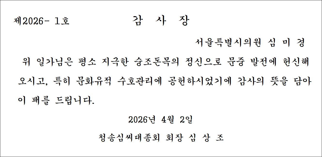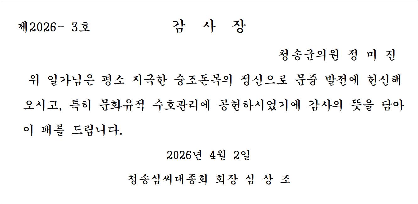 감 사 : 심 상 돈 (인)